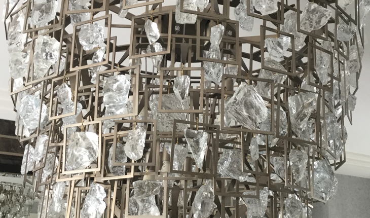 Masterpieces faithfully crafted and festooned in Brazilian rock crystal pendalogues and droplets.