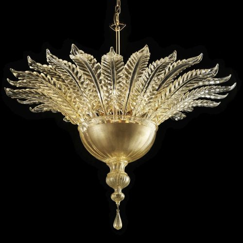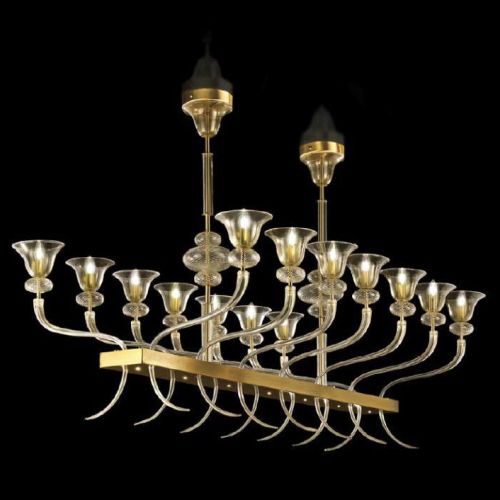 The small pieces of conjoined glass on the arms mark it out as an 18th century Rezzonico style chandelier, and the 24 carat gold accents add additional warmth, richness, and depth.